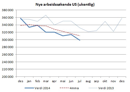 US LEI-indeksen steg 0,9 pkt til 103,3 i juli, og har med det steget 14 måneder på rad. Utviklingen underbygger styrken i den amerikanske økonomien, og at veksten synes å befeste seg.